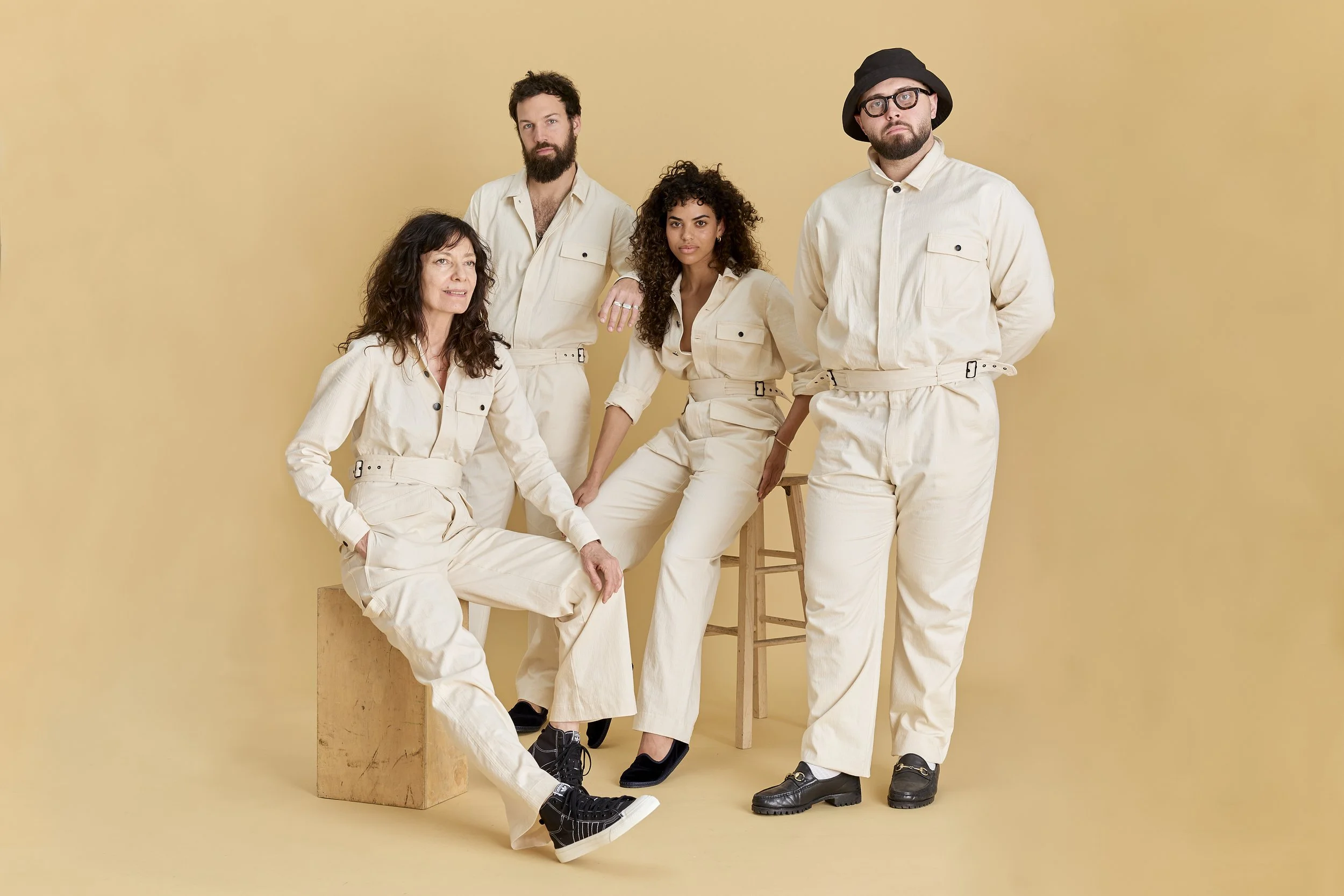 Our first designs were undyed cotton jumpsuits - a sort of clean slate in order to focus and execute a long list of to-do's, without the worry of dressing.